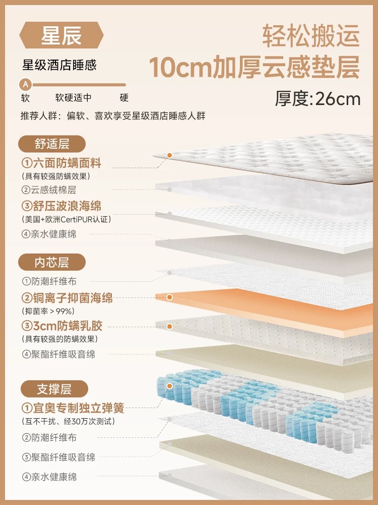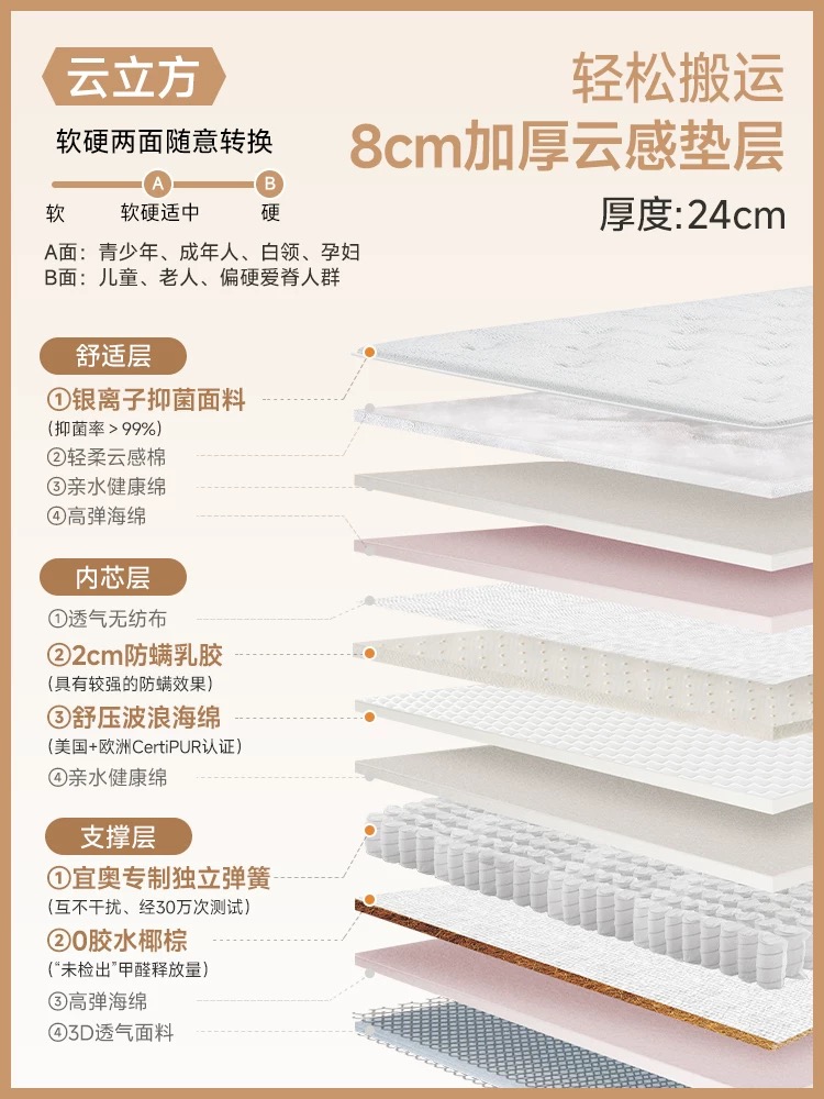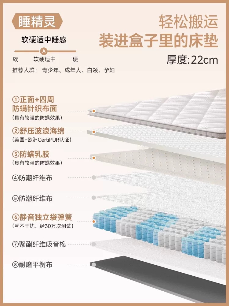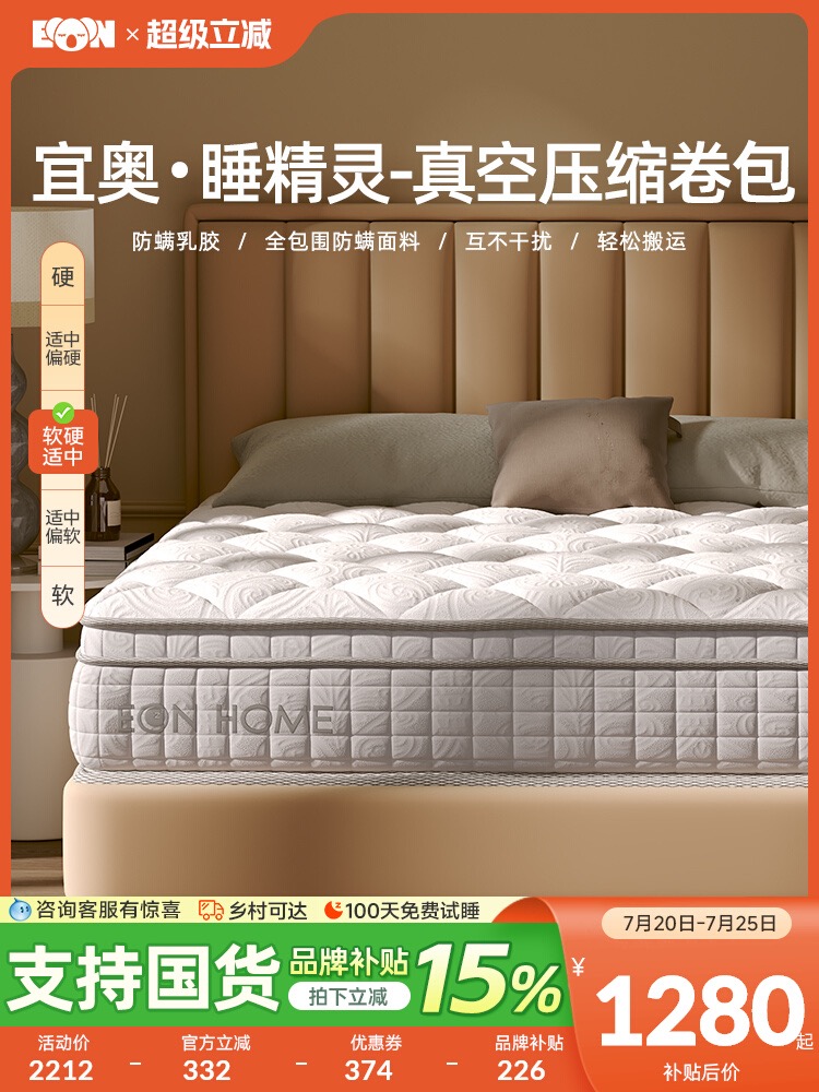 / 『宜奥▪睡精灵』真空压缩卷包席梦思防螨乳胶独立袋装弹簧床垫