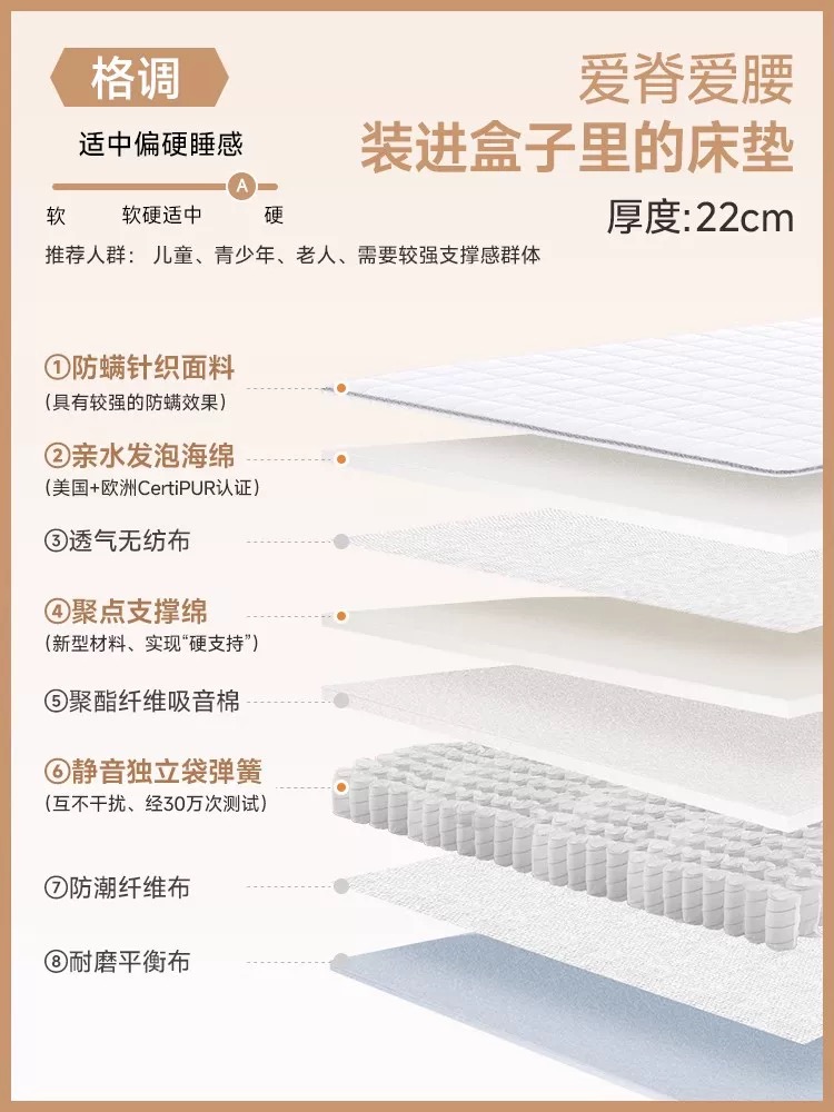栖作坚果床垫0胶水独立弹簧护脊硬垫子厚儿童可定制双人卧室家用