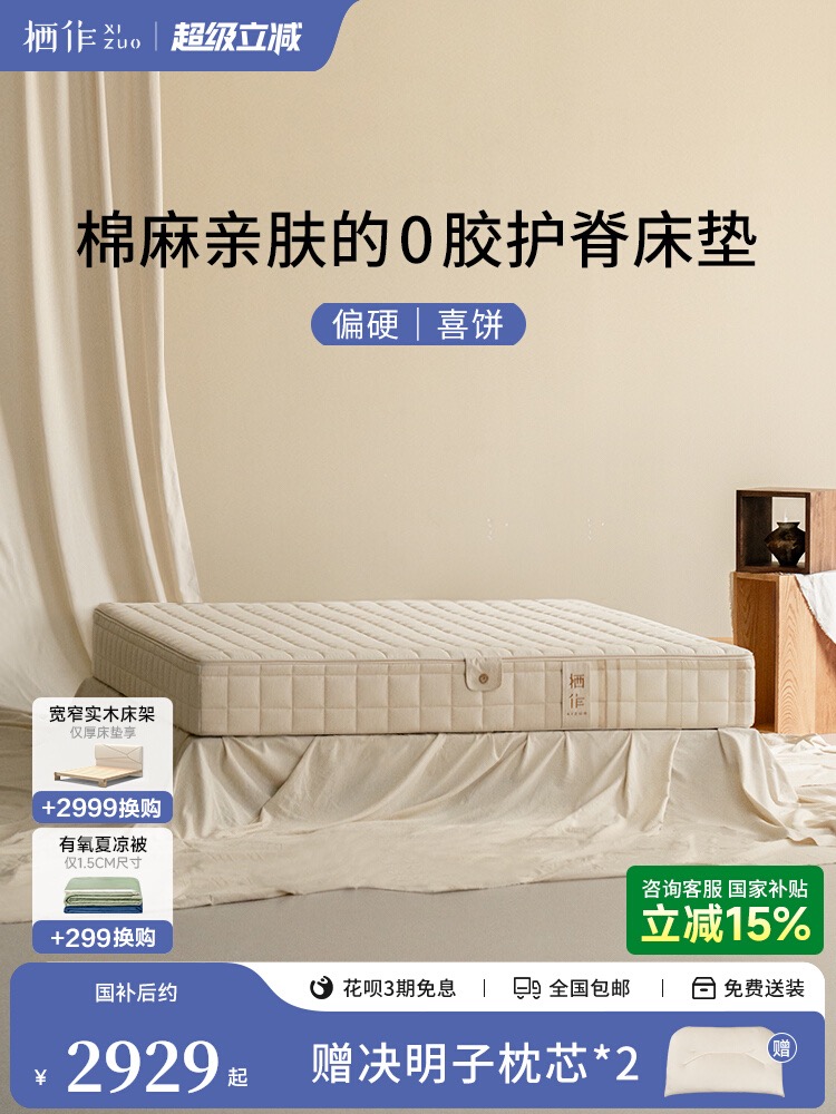 / 【喜饼】栖作床垫0胶可拆卸独立弹簧床垫偏硬卧室双人护脊席梦思
