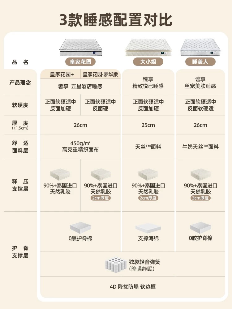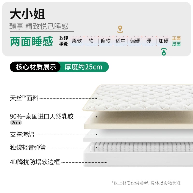 雅兰【大小姐】 皇家花园+ 睡美人 加厚乳胶床垫独立弹簧软硬垫家用席梦思