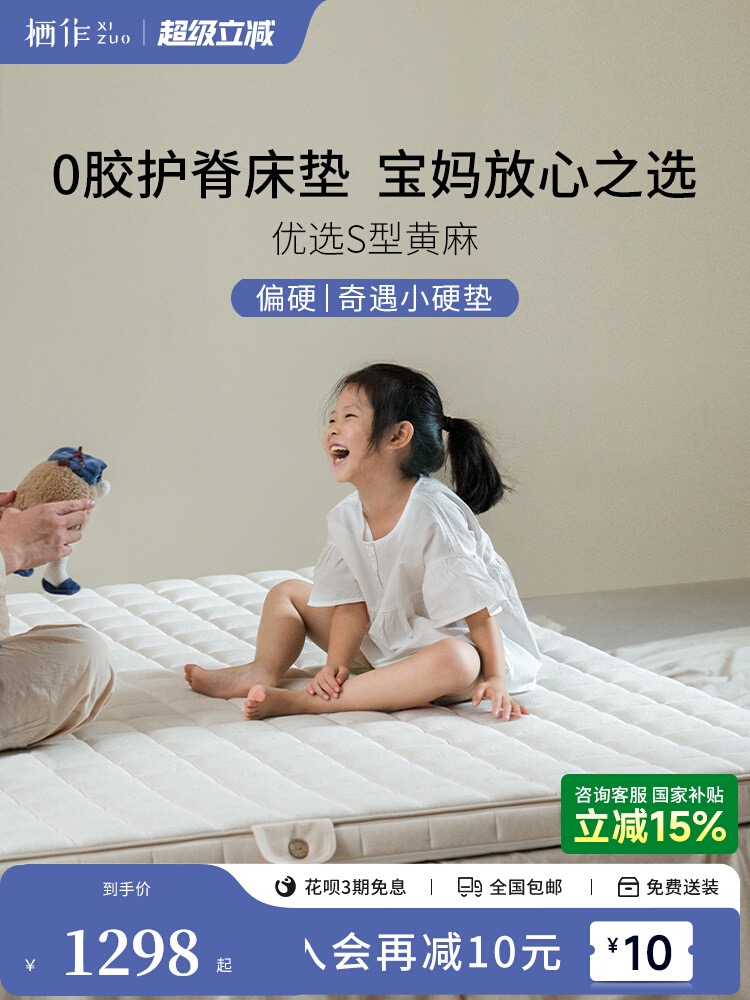 儿童床垫栖作奇遇黄麻小硬垫子政府补贴0胶水榻榻米薄垫软垫加硬