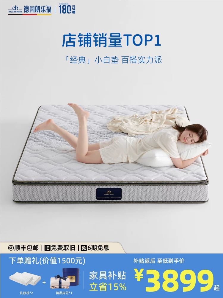 / 朗乐福席梦思天然乳胶独立弹簧床垫卧室软硬两用护脊家用 经典