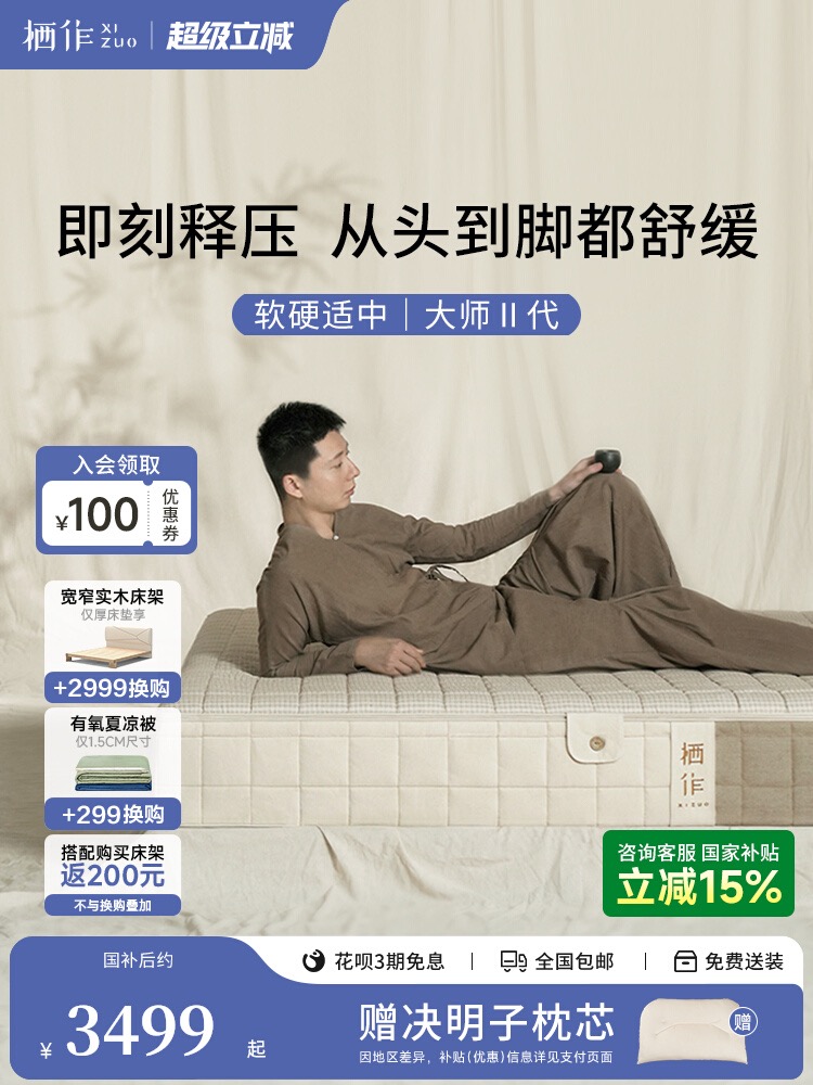 / 栖作大师2代床垫政府补贴0胶水弹簧可拆卸家用卧室软垫不变形加厚