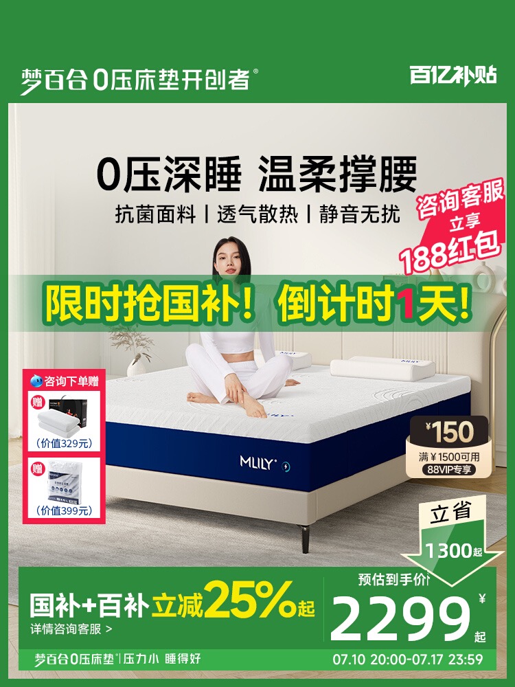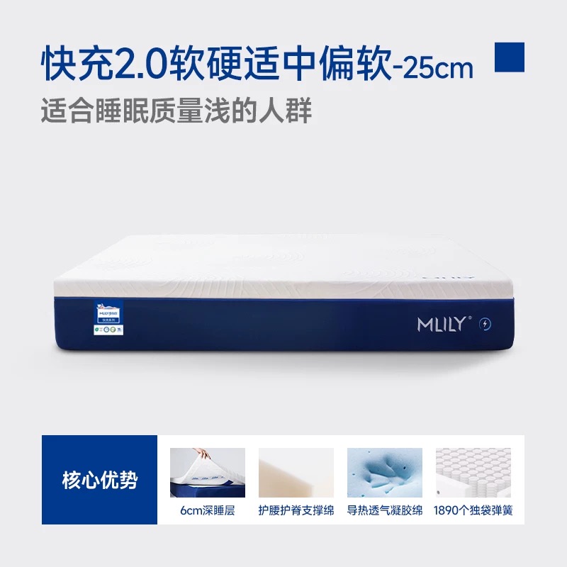 / 梦百合快充2.0护脊记忆棉家用0压床垫卧室独立弹簧席梦思