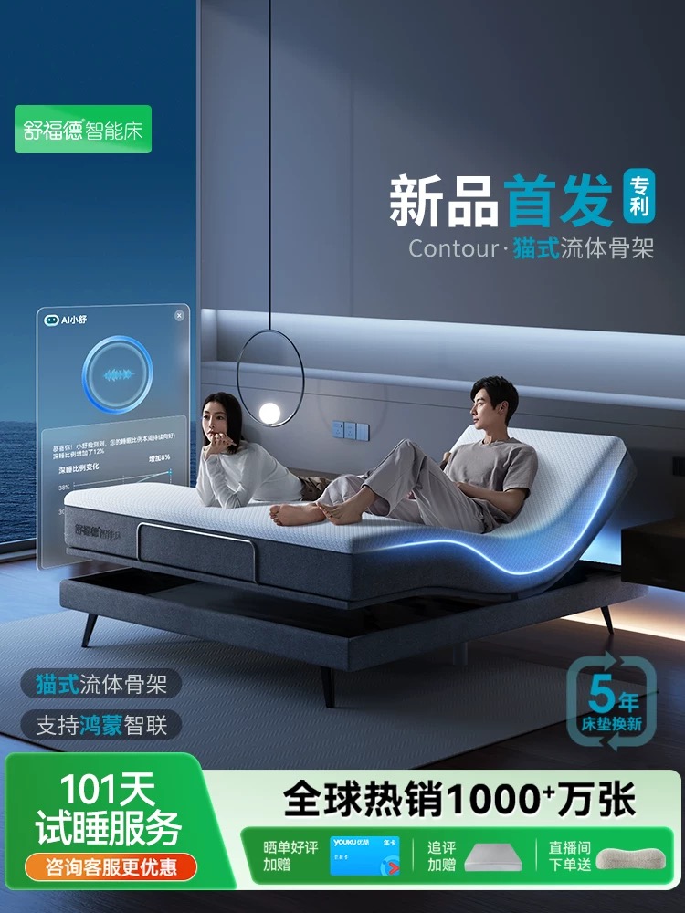 / 舒福德猫式流体智能床S300Pro鸿蒙智联生态家用多功能智能床垫