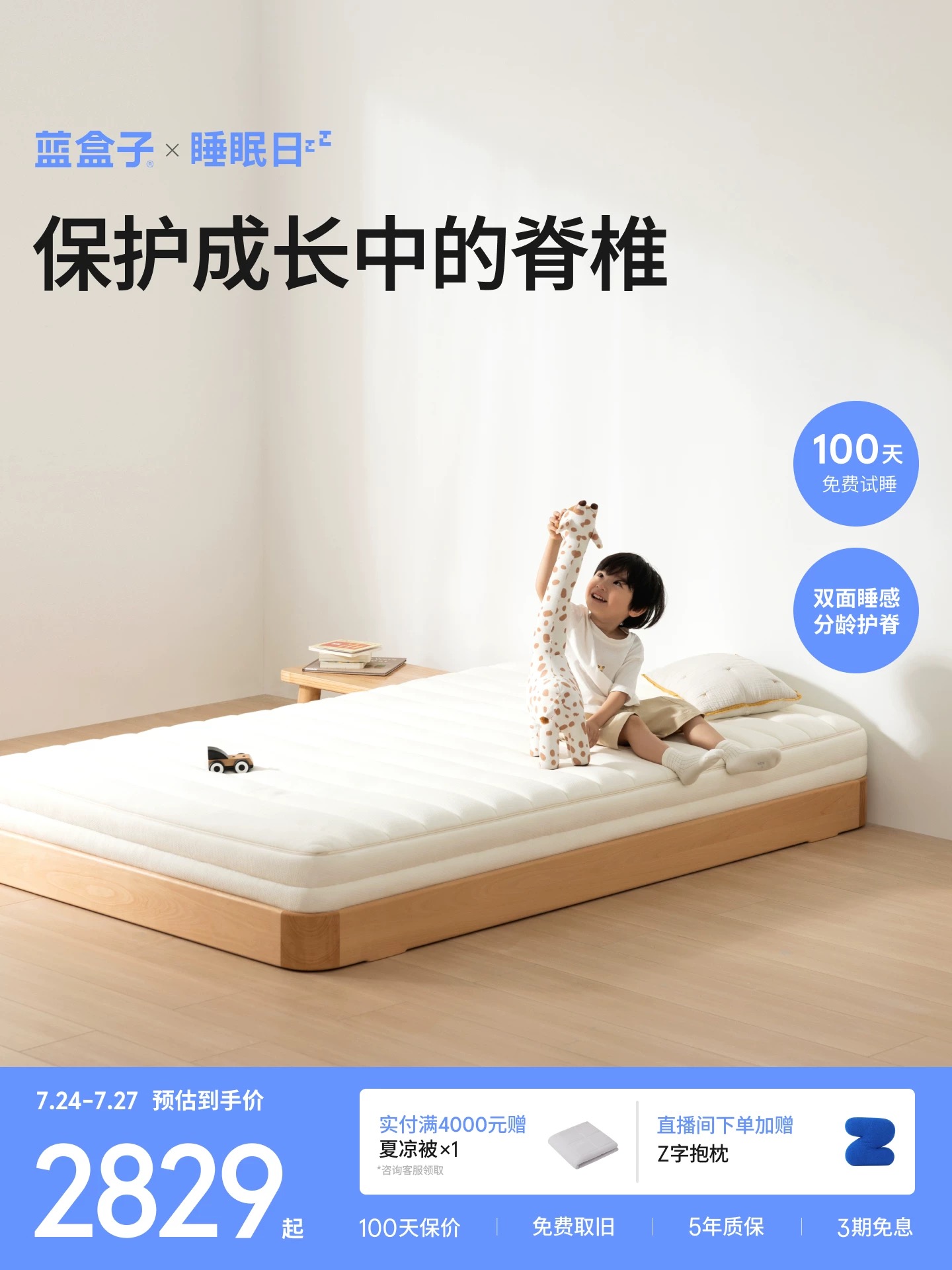 / 蓝盒子小朋友床垫政府补贴两面睡感抗菌防螨青少年儿童专用席梦思