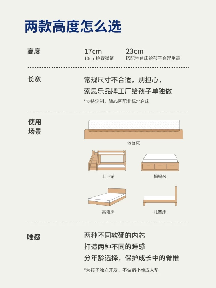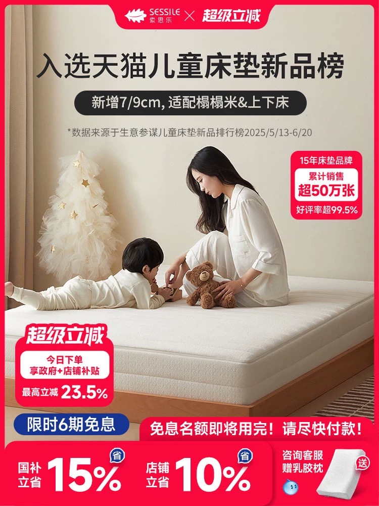 / Sessile 全拆护脊环保0胶水儿童青少年卧室席梦思地台床床垫